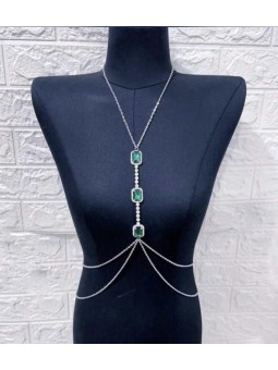 Nueva gargantilla plata de diamantes cruzado en el pecho con brillantes verde