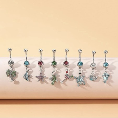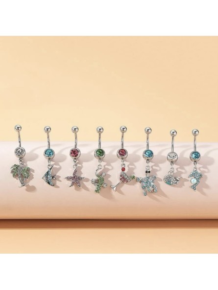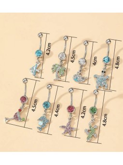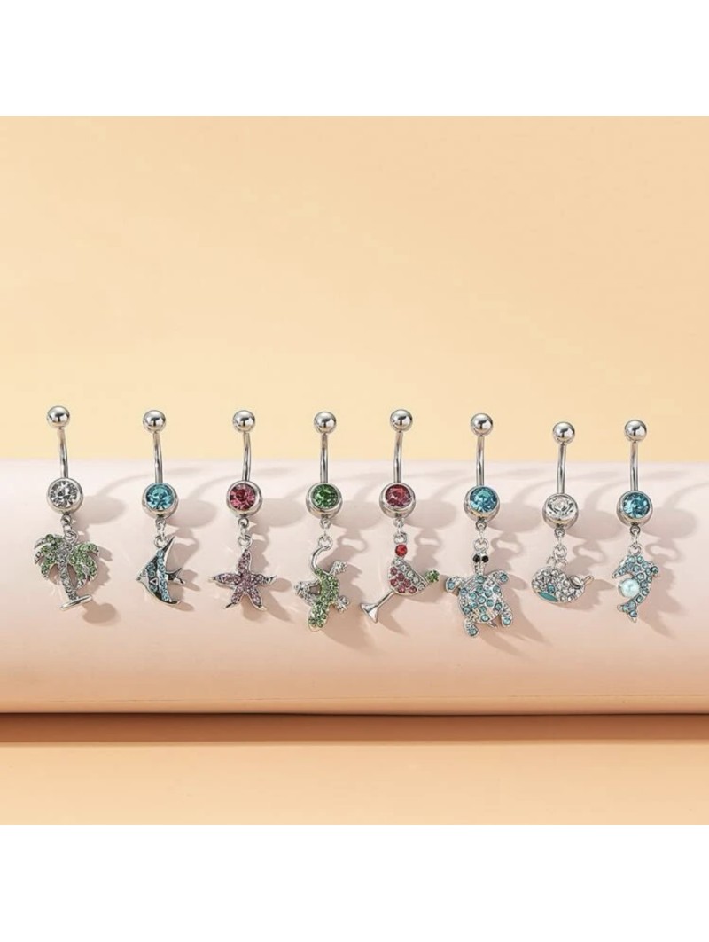 Lote de ocho piercings para ombligo largos con diferentes circonitas