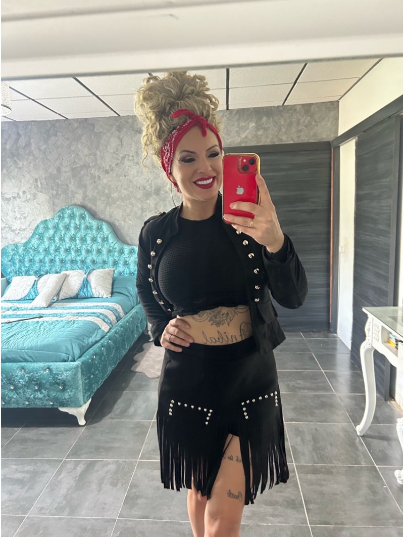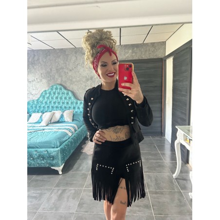 Nueva falda, chord de Antelina con tachuelas y flecos