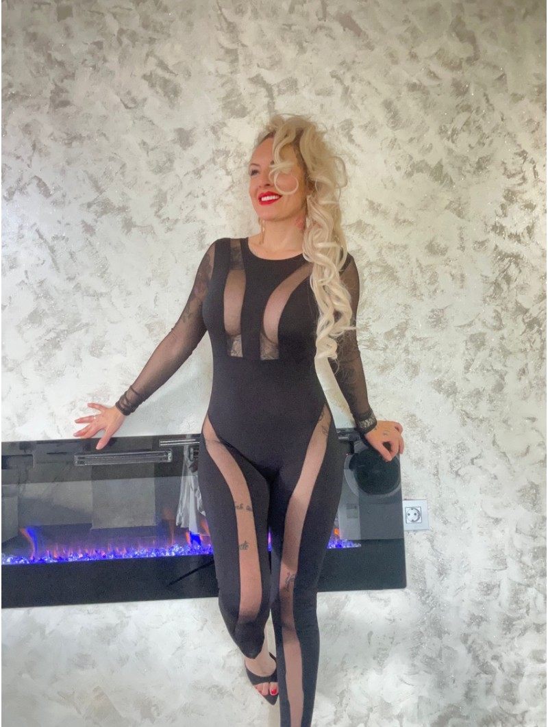 Nuevo mono largo pitillo con semi-transparencias y cremallera traseraTalla única. Recomendado para talla 34 36 38